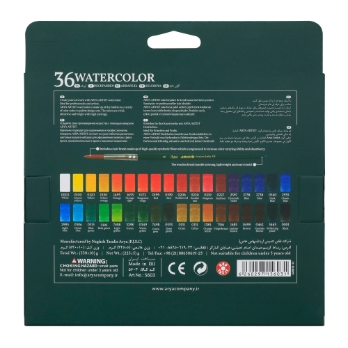 آبرنگ آریا آرتیست 36 رنگ جعبه مقوایی
