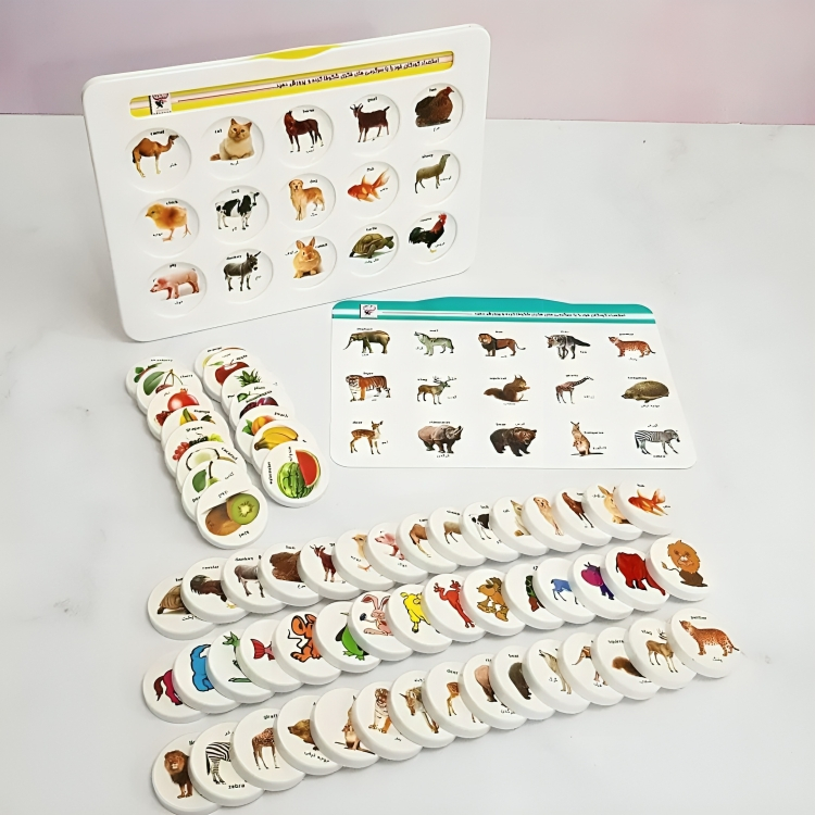 - هوش چین یک تکه یک ابزار آموزشی بسیار مناسب برای زبان آموزی به دو زبان فارسی و انگلیسی برای کودکان گروه سنی 1.5 تا 3 سال است. با قرار دادن هر صفحه در قالب مخصوص و در اختیار داشتن درپوش های مرتبط با هر صفحه، به کودک بیاموزید که مشابه هر تصویری که درون صفحه وجود دارد، درپوش مرتبط را پیدا کرده و در جای مناسب خود قرار دهد. این وسیله آموزشی جهت تقویت مهارت های چشم و دست، زبان آموزی، مهارتهای حرکتی دست، شناخت پدیده ها می باشد.
