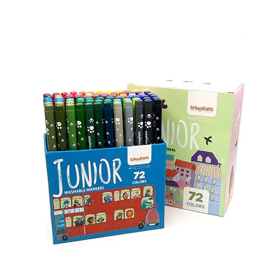 ماژیک نقاشی 72 رنگ جونیور اسکول فنس یک مجموعه‌ی کامل و حرفه‌ای برای کودکان و هنرمندان کوچک است. این ست با نوک گرد و باکیفیت این ماژیک‌ها، رنگ‌آمیزی را راحت و لذت‌بخش کرده و طراحی ارگونومیک و سبک جعبه با دسته‌ی مخصوص حمل، جابه‌جایی و استفاده از آن را آسان می‌کند.