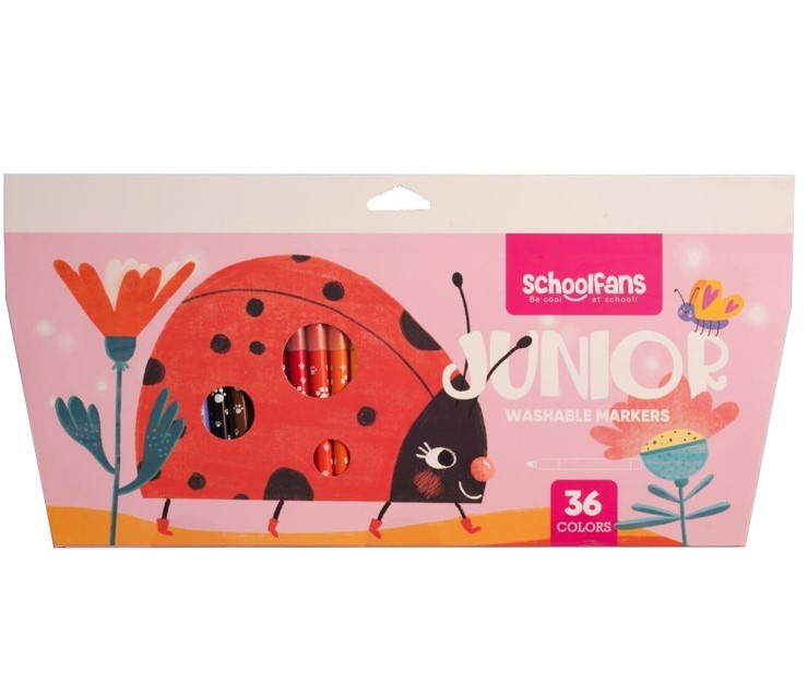 ماژیک نقاشی 36 رنگ جونیور اسکول فنس یک مجموعه‌ی کامل و حرفه‌ای برای کودکان و هنرمندان کوچک است. این ست با نوک گرد و باکیفیت این ماژیک‌ها، رنگ‌آمیزی را راحت و لذت‌بخش کرده و طراحی ارگونومیک و سبک جعبه با دسته‌ی مخصوص حمل، جابه‌جایی و استفاده از آن را آسان می‌کند.