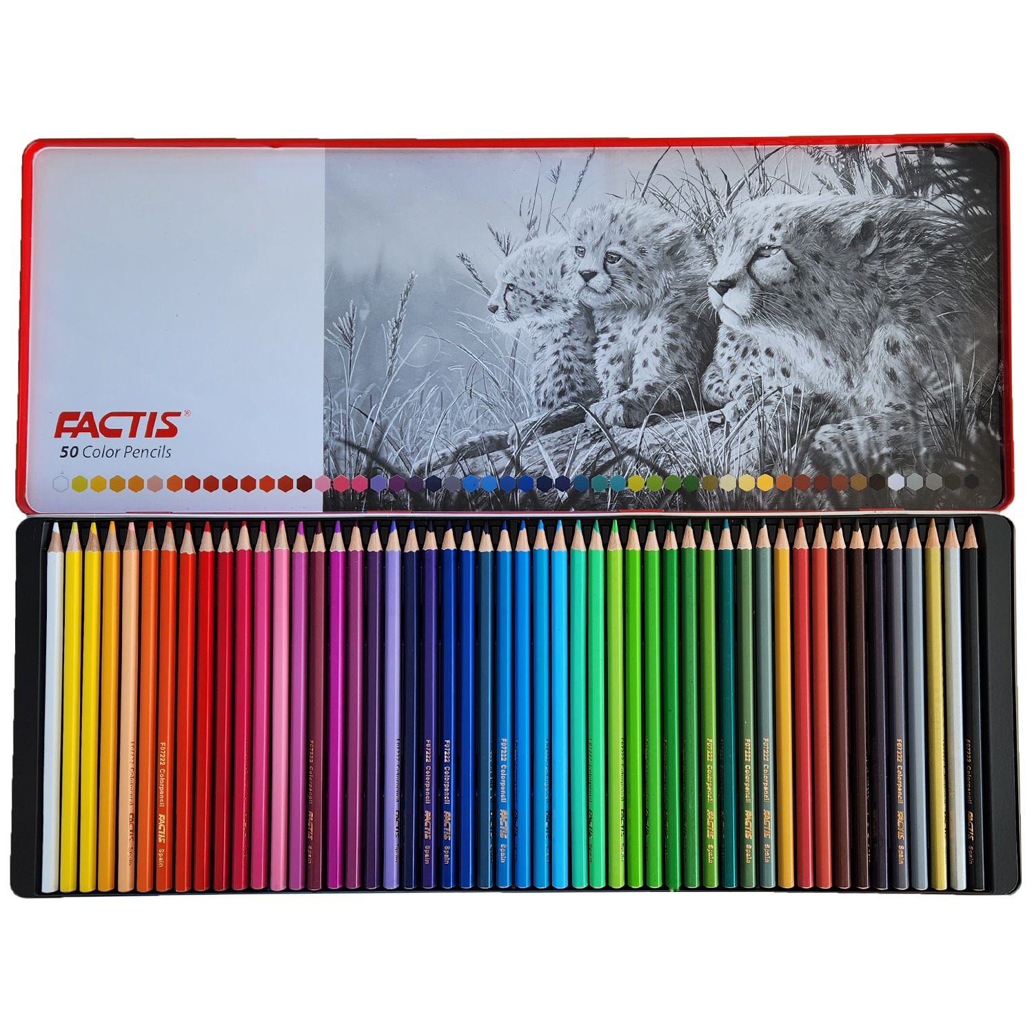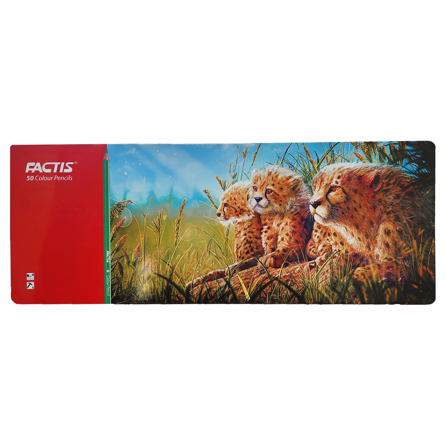 مداد رنگی فکتیس 50 رنگ جعبه فلزی طرح یوزپلنگ